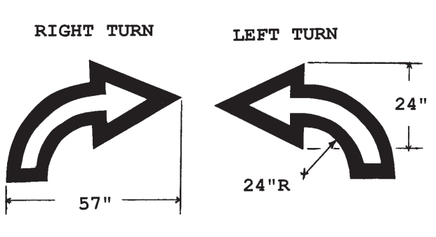 This CURVED OUTLINE ARROW SET FOR BOTH RIGHT AND LEFT TURNS measures approximately 57" wide X 24" tall and meets most federal, state and local regulations.